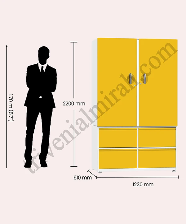 Step into a world where style meets structure. This vibrant yellow and white wardrobe is designed for those who value both aesthetics and functionality. With a secure built-in safe, spacious drawers, and a playful mix of colorful hangers, it’s more than just storage—it’s a statement.