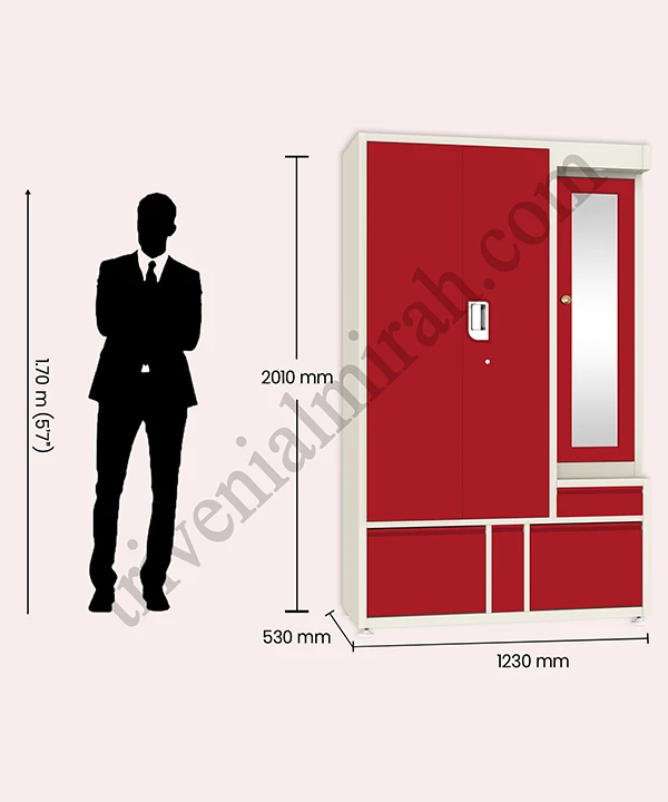 The built-in mirror adds a touch of sophistication while serving everyday practicality. Framed in a bold accent color, it enhances the wardrobe’s visual appeal and offers a convenient solution for quick styling checks. Thoughtfully positioned inside the door, it maximizes space without compromising design—making it a perfect blend of elegance and efficiency.