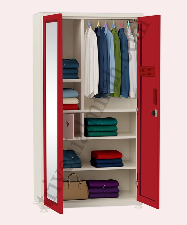 Step into a world where style meets structure. This vibrant maroon and white wardrobe is designed for those who value both aesthetics and functionality. With a secure built-in safe, spacious drawers, and a playful mix of colorful hangers, it’s more than just storage—it’s a statement.