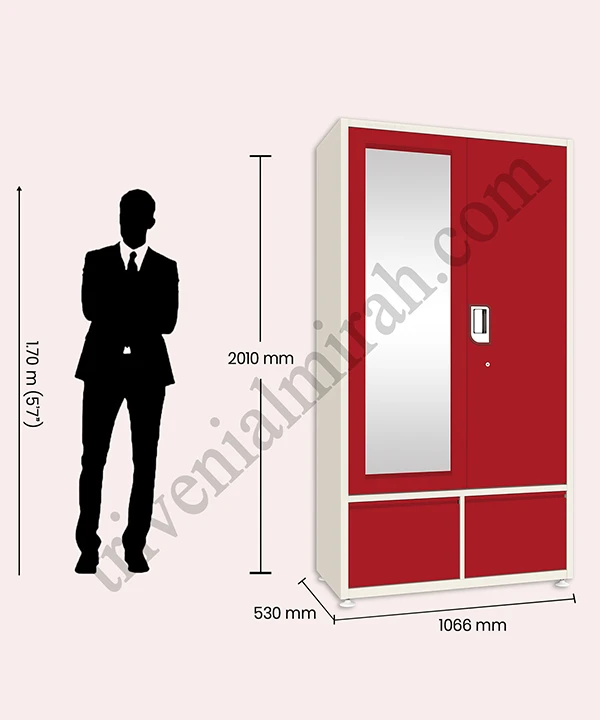 The built-in mirror adds a touch of sophistication while serving everyday practicality. Framed in a bold accent color, it enhances the wardrobe’s visual appeal and offers a convenient solution for quick styling checks. Thoughtfully positioned inside the door, it maximizes space without compromising design—making it a perfect blend of elegance and efficiency.