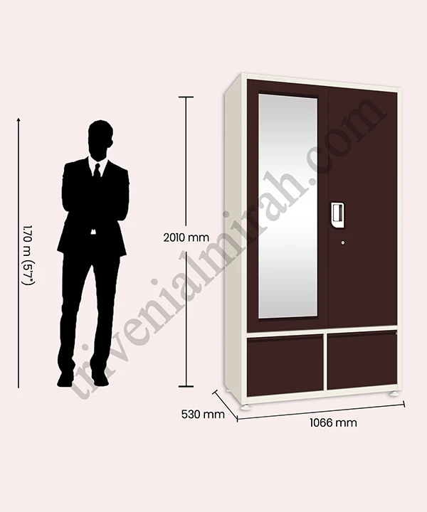 Step into a world where style meets structure. This vibrant coffee and white wardrobe is designed for those who value both aesthetics and functionality. With a secure built-in safe, spacious drawers, and a playful mix of colorful hangers, it’s more than just storage—it’s a statement.