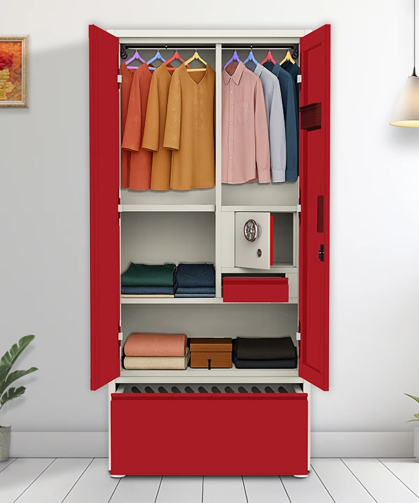 The built-in mirror adds a touch of sophistication while serving everyday practicality. Framed in a bold accent color, it enhances the wardrobe’s visual appeal and offers a convenient solution for quick styling checks. Thoughtfully positioned inside the door, it maximizes space without compromising design—making it a perfect blend of elegance and efficiency.